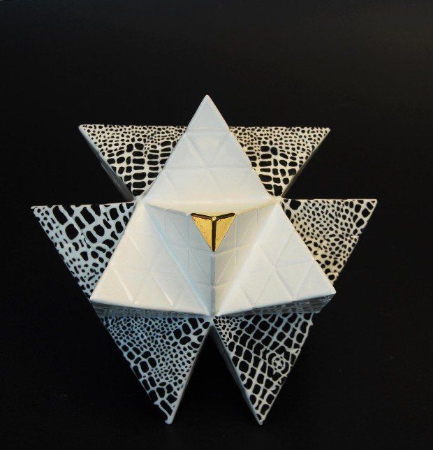 He elegido algunos de los poliedros para proyectar mi obra artística realizada en Porcelana, lustre de Oro y Platino.